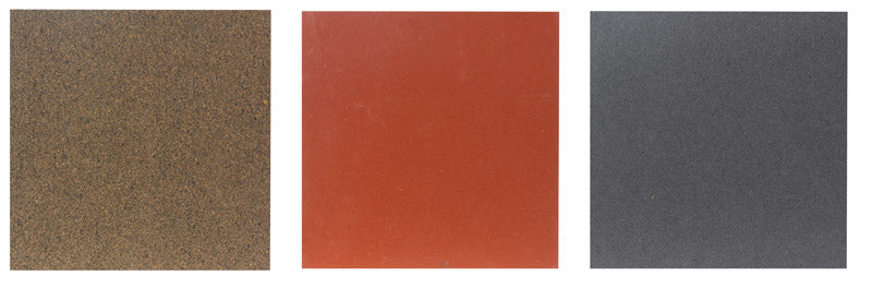 • What's Included:Squares: (1) Red Rubber 3/32in. Thick, (1) Black Fiber 1/3in. Thick, (1) Cork 1/16in. Thick