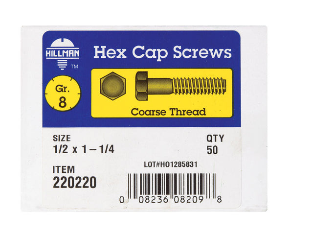 HILLMAN 1/2 in. D X 1-1/4 in. L Heat Treated Steel Hex Head Cap Screw 50 pk
