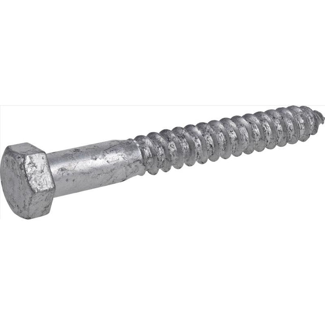 Galvanized hex lag screws provide superior weather and corrosion protection, making it ideal for outdoor projects. Common applications include retaining walls, deck frames and outdoor play equipment. This galvanized hex lag screw has coarse threads with a hexagonal drive and requires clearance above the fastener. The screw has a galvanized finish which contains more corrosion resistant properties, allowing it to last longer than those made with traditional steel.