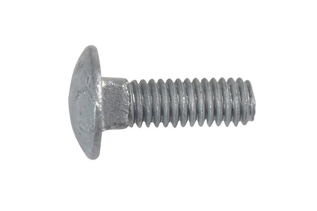 Carriage bolts are designed to fasten a wooden face to either a wood or metal frame. Its flat head is designed to eliminate the need for a washer and provide a semi-flush finish to applications. The square underside of the head is self-locking to eliminate spinning and the need for a driving tool. The galvanized finish provides optimal rust prevention but can be chalky in appearance. *