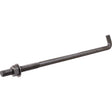L-shaped with male threads to which a nut and washer can be attached