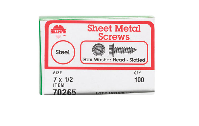 HILLMAN No. 7 X 1/2 in. L Slotted Hex Washer Head Sheet Metal Screws 100 pk