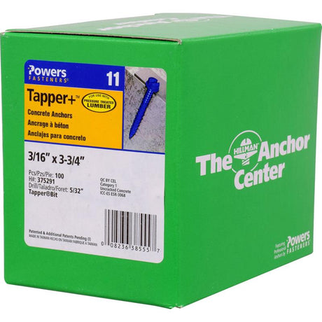 - HILLMAN Tapper 3/16 in. D X 3.25 in. L Steel Flat Head Concrete Screw Anchor 100 pk $37.94- $37.99Unit price /UnavailableIn stock (123 units)