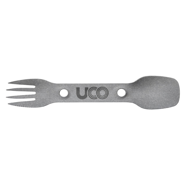 Functionality. The utensils you eat should just work. Often referred to like three in one, the Utility Spork is anything but a compromise. Micro serrations smoothly cut through protein-rich foods and stab the perfect bite. Those holes aren’t just for weight reduction. Each Spork Set includes a Reusable Tether that can be clipped to a bag, used to hang dry or stack and cinch multiple utensils together for transport. Metal gives you added durability and cooking possibilities over composite sporks (won't melt). Titanium gives you lightweight and strength over stainless sporks or normal household utensils.
