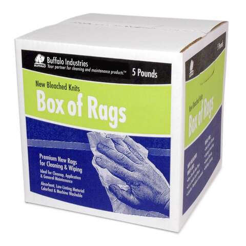 New bleached knits are professional-grade heavy-duty wiping cloths. They are ideal for finishing, staining, cleanup & general maintenance. The cloths are all white, cut into usable-sized pieces, washed and bleached for maximum absorbency.