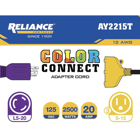 - Reliance Controls Color Connect 12/3 SJTW 125 V 12 in. L Splitter Cord $22.94- $22.99Unit price /UnavailableIn stock (350 units)