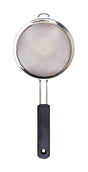 The fine mesh Strainer is ideal for rinsing and straining vegetables, berries, pasta and more. Stainless steel double rod construction makes it extra sturdy and a small loop lets it rest on a pot or bowl. The soft, comfortable handle won't slip, even when wet.