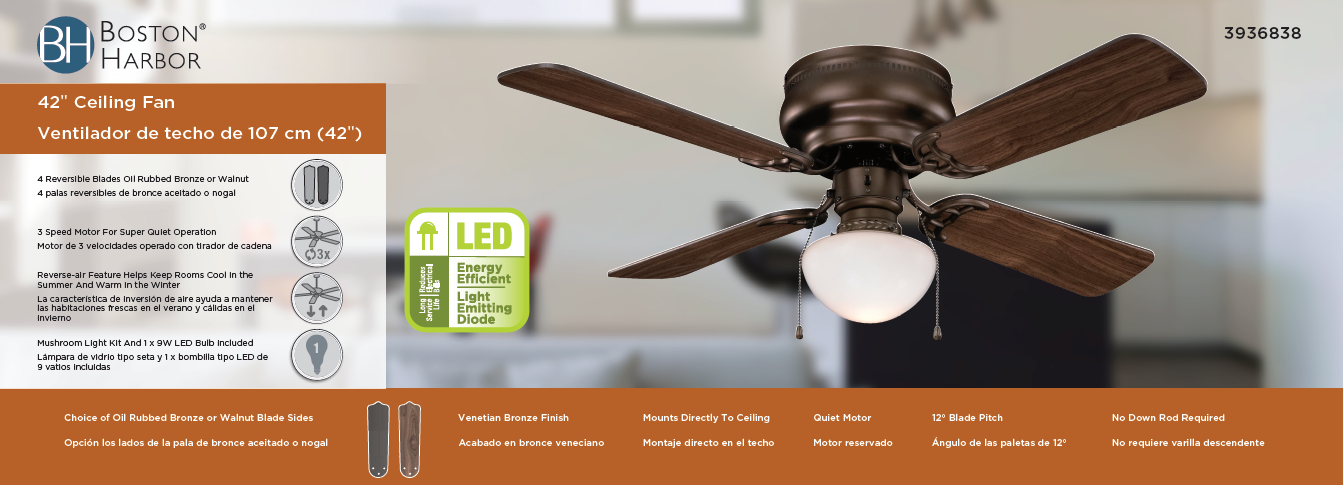 Boston Harbor CF-78125-ORB Ceiling Fan, 4-Blade, Venetian Bronze Housing, 42 in Sweep, MDF Blade, 3-Speed is backordered and will ship as soon as it is back in stock.