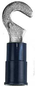Jandorf Hook Terminal, 16 to 14 AWG Wire, Vinyl Insulation, Copper Contact, Tin Contact Coating, #6 Stud, Blue.