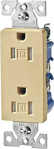 Receptacle is tamper resistant with a UL Listed shutter system and impact-resistant thermoplastic face and back body that is virtually unbreakable. The 2008 National Electrical Code (NEC) states that "Effective January 1, 2008, all receptacles installed in new dwelling units must be tamper-resistant." Features a wire stripper for number 14 and number 12 wire, extra long and wide mounting straps and tri-combo screws that accept slotted, Phillips and Robertson-head tools. Terminal screws are backed out and ready to wire. Side-wire terminals accept up to number 10 solid or stranded wire. Push in terminals accept number 14 solid wire. Screw-catch feature speeds wall plate installation. 15 amp, 125 volt. NEMA 5-15R. UL, cULus Listed.