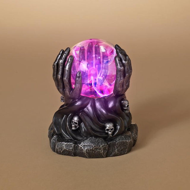 Make the holidays Spooktacular this year with this resin skeleton hands base with static lighted magic ball.