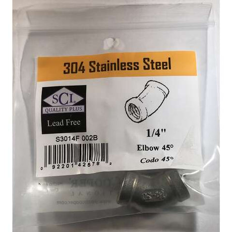 Smith-Cooper 1/4 in. FPT X 1/4 in. D FPT Threaded Stainless Steel 45 Degree Elbow