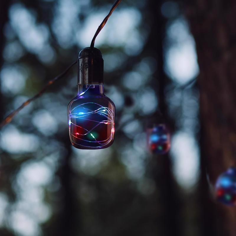 Hang in pendant lights, on string lights, or in uncovered lamps to show off the color-changing glow