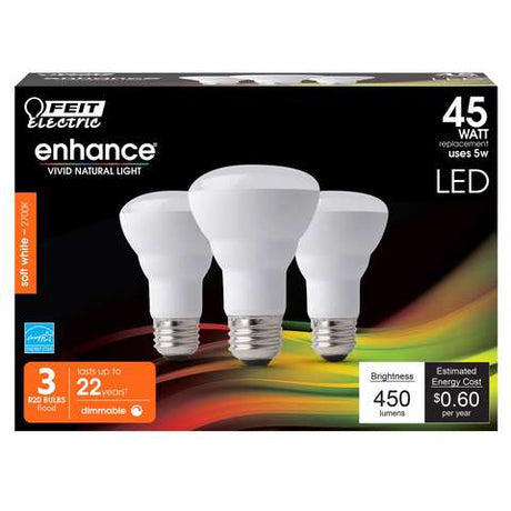 - Feit Enhance R20 E26 (Medium) LED Bulb Soft White 45 Watt Equivalence 3 pk $13.94- $13.99Unit price /Unavailable