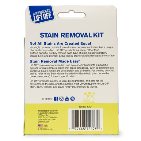 - 5% offMotsenbocker's Lift Off 421-01 Stain Removal Kit, 12 oz, Liquid, Mild, Clear $9.54$9.99Unit price /Unavailable