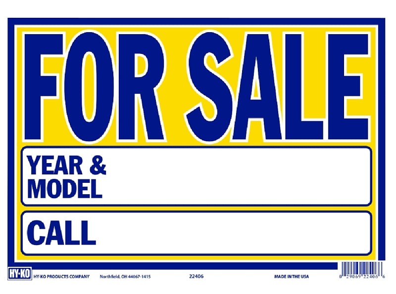 Hy-Ko 22406 Neon Sign, 9 x 13 in Dimensions, FOR SALE, YEAR & MODEL, CALL, Blue Legend, Yellow Background, Plastic, Pack of 10