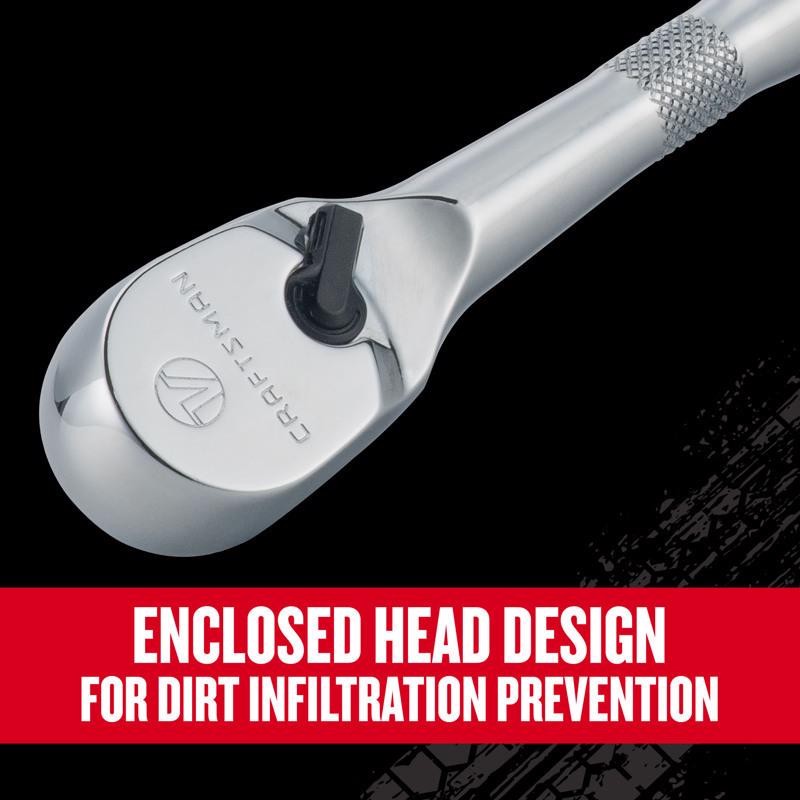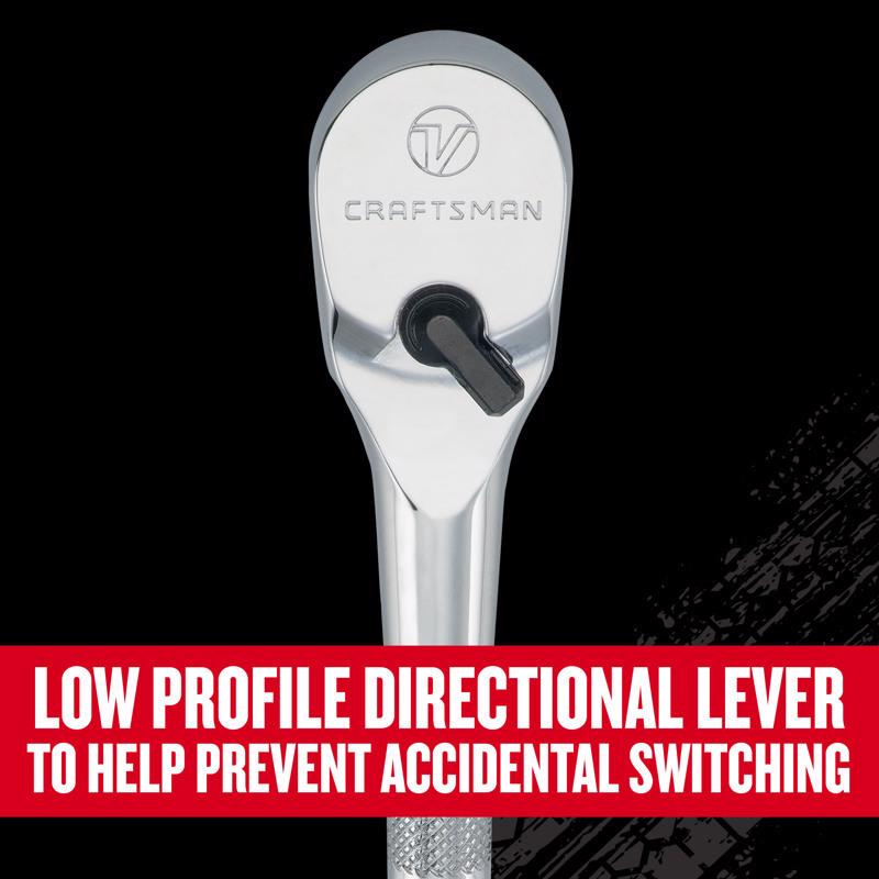 Finish fastening projects with pride as these V-Series™ 3/8 in. and 1/2 in. Drive Ratchets deliver the dependability and performance you expect on the jobsite. Optimized tool life and endurance are just a few of the benefits provided by the expert-tested, precision-engineered gears. Access confined spaces with ease and maintain grip strength with the ratchets’ 96-tooth designs and compressed 3-3/4 degree arc swing.