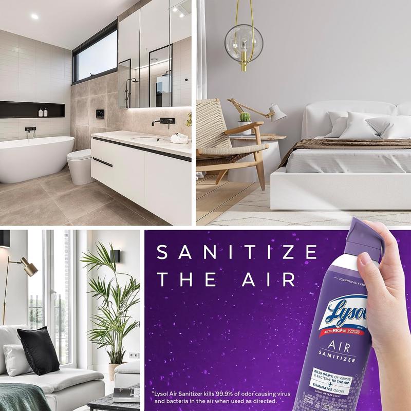 SANITIZE THE AIR THROUGHOUT YOUR HOME: Lysol Air Sanitizer Spray sanitizes and eliminates 99.9% of odor causing bacteria* in the air. Enjoy the scent of a light breeze. (*Use as directed).