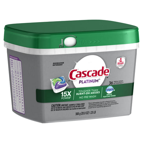 $12.94$12.99Unit price /UnavailableIn stock (2784 units)Cascade Platinum Actionpacs Fresh Scent Pods Dishwasher Detergent 20 oz 36 pk