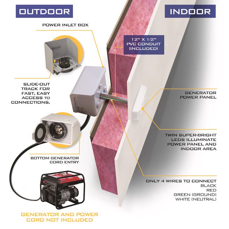 Reliance Controls 30 amps 125 V 6 space 6 circuits Surface Mount Generator Power Transfer Kit