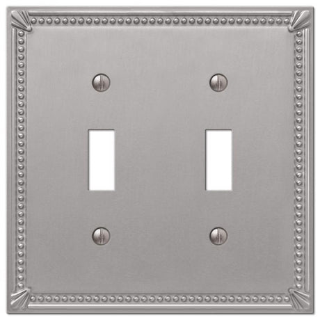 Amerelle Imperial Bead Brushed Nickel 2 gang Metal Decorator/Toggle Wall Plate 1 pk