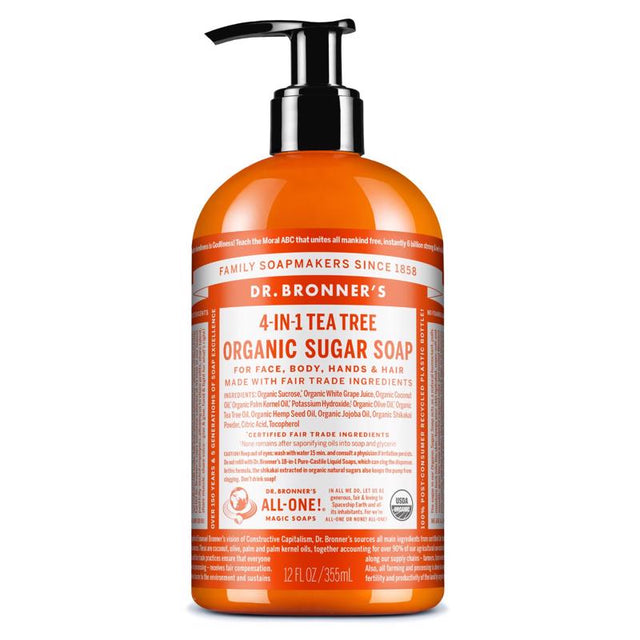 Dr. Bronner's 4-in-1 Organic Tea Tree Scent Sugar Soap 12 oz, Pack of 12