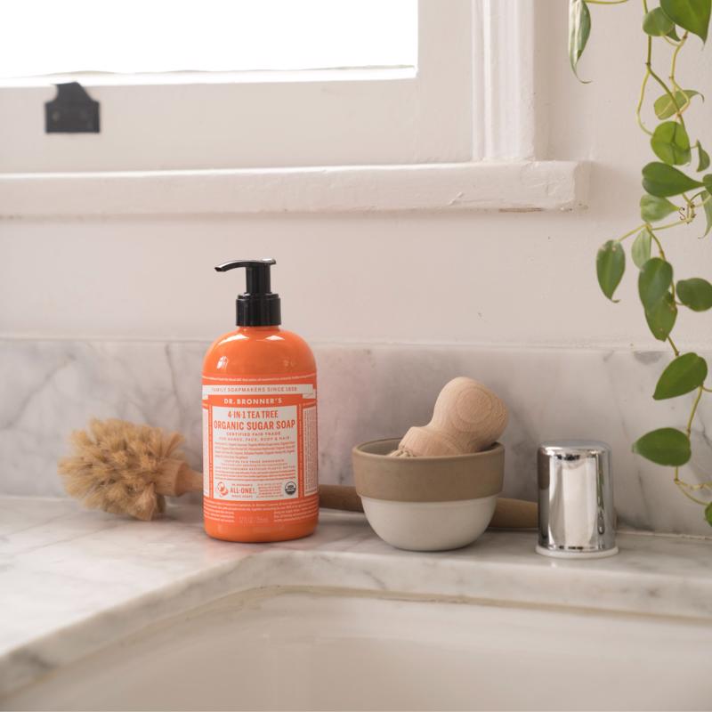 Dr. Bronners Organic Sugar Soap is made for washing everything from your hands to your hair