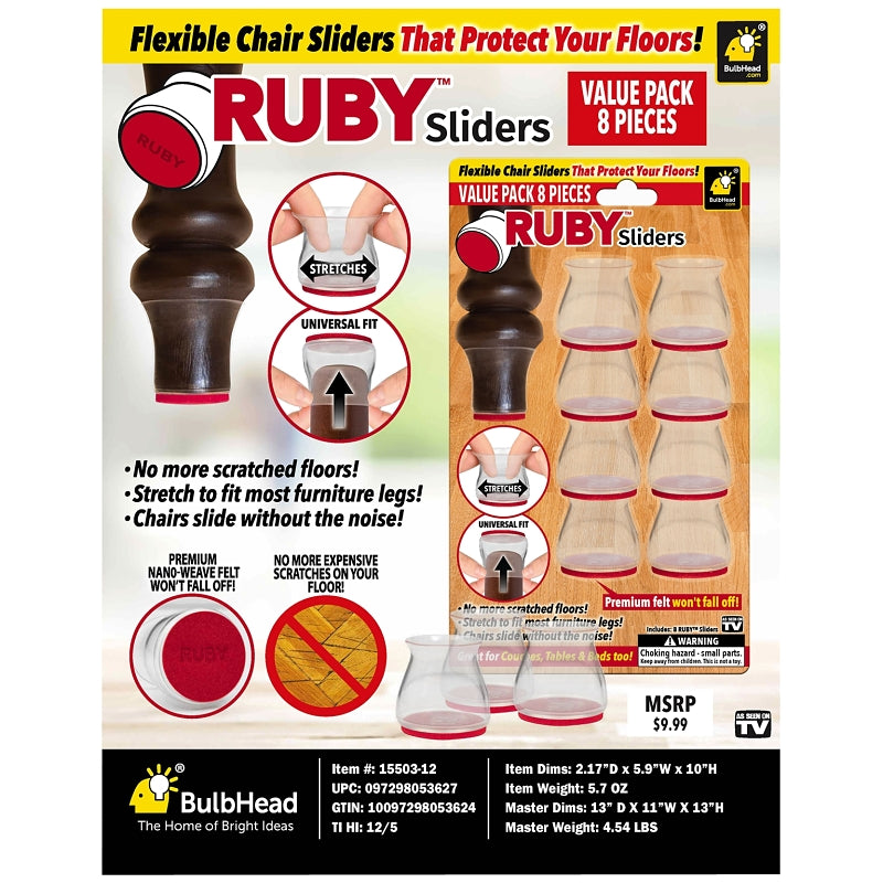 TELEBrands 15503-FD24 Chair Slider, Rubber, Clear, Pack of 24 is backordered and will ship as soon as it is back in stock.