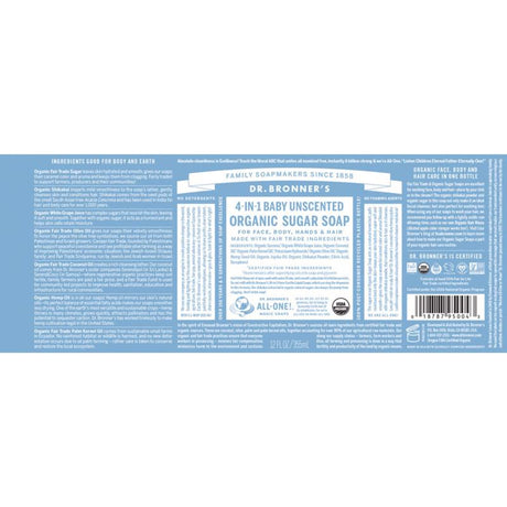 - 7% offDr. Bronner's 4-in-1 Baby Organic Baby Unscented Scent Sugar Soap 12 oz, Pack of 12 $167.83$179.88Unit price /UnavailableLow stock (13 units)
