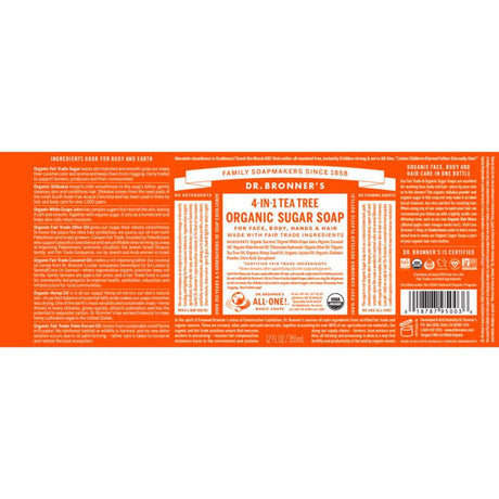 - 7% offDr. Bronner's 4-in-1 Organic Tea Tree Scent Sugar Soap 12 oz, Pack of 12 $167.83$179.88Unit price /UnavailableIn stock (23 units)