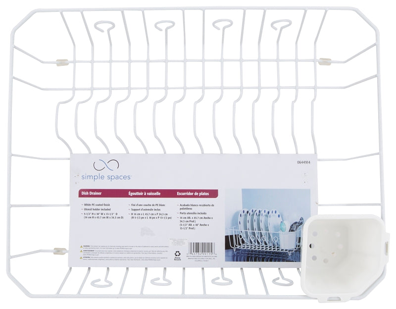 The Simple Spaces dish drainer with cutlery basket with steel wire frame measures 18 in L x 13-1/2 in W x 5-1/2 in H.