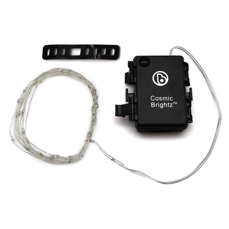 Brighten up your bike frame! Cosmic Brightz 40 diamond-bright micro-LED lights wrap around any standard bike frame. Each package includes one 6.5-foot light string with attached battery pack, mounting strap, and one securing tie. Batteries not included.