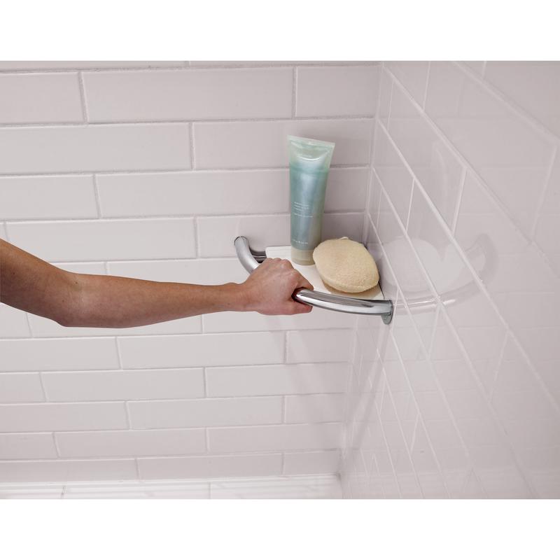 Delta traditional corner shelf with assist bar offers the perfect resting place for your bathroom essentials with an integrated assist bar for leverage. The dual function design makes your bathroom safer for people of all ages and all abilities, while seamlessly blending into your existing bathroom design. The traditional style provides warmth and welcome with conservative and refined edges and symmetry for a familiar and balanced design.