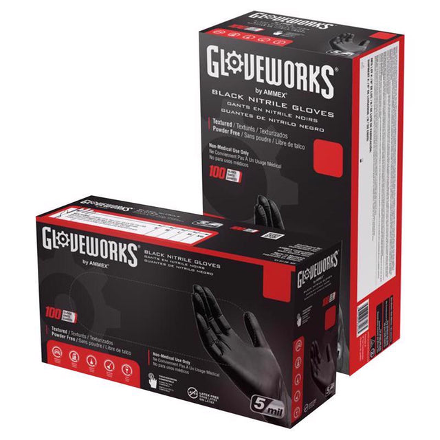 Gloveworks Nitrile Disposable Gloves Small Black Powder Free 100 pk