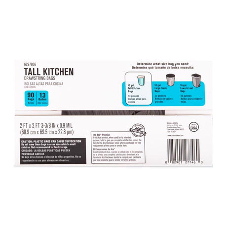Ace 13 gal No Scent Tall Kitchen Bags Drawstring 90 pk, Pack of 6
