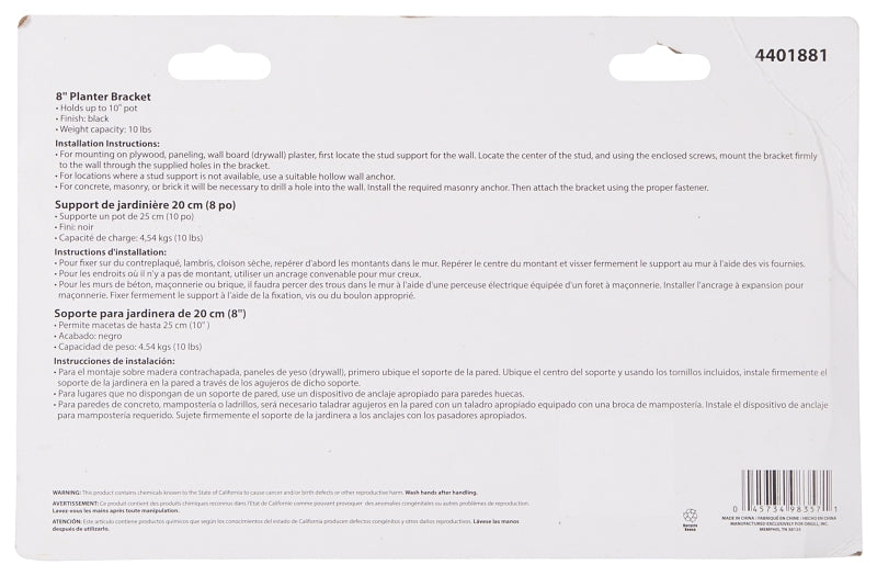 Landscapers Select GB0233L Plant Bracket, 8-1/2 L, Steel, Black, Wall Mount Mounting is backordered and will ship as soon as it is back in stock.