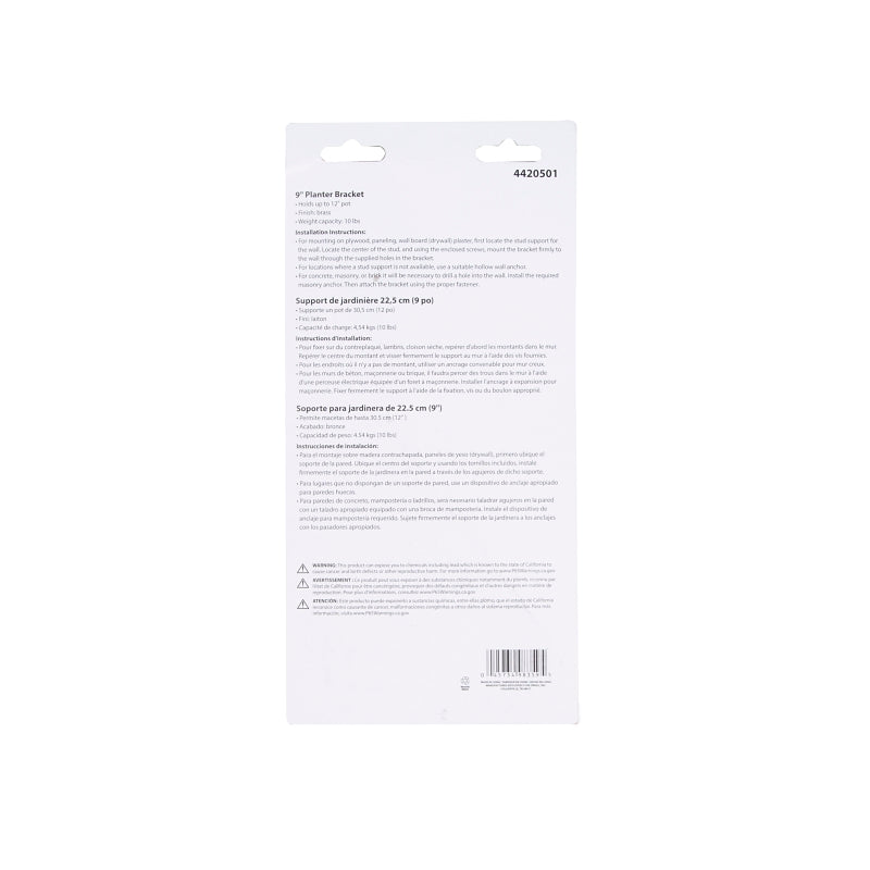 Holds up to a 12 in pot. Easy installation. 9 in planter bracket..