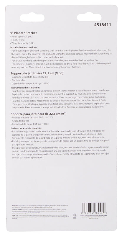 Holds up to a 12 in pot. Easy installation. 9 in planter bracket..