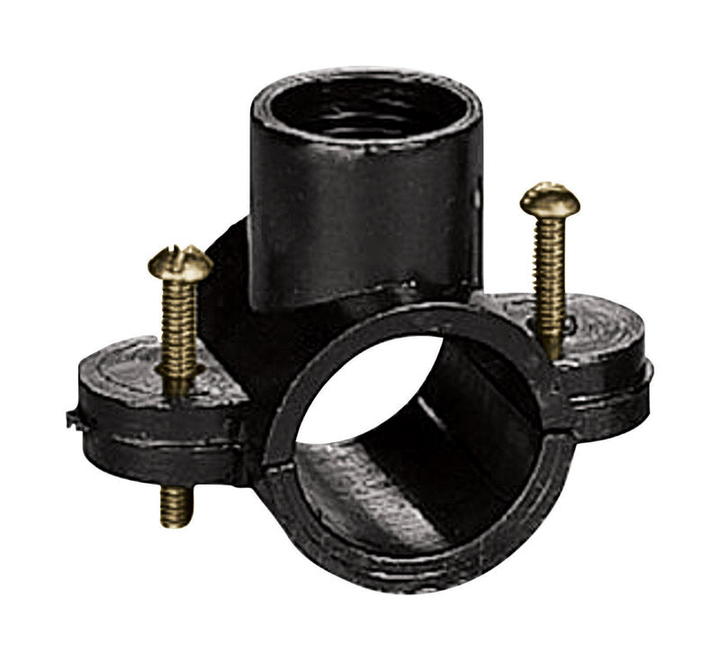 The Plastic Saddle Tee connects sprinklers to poly pipe. It is made of durable plastic with brass screws and includes a rubber gasket for a leak-proof seal.