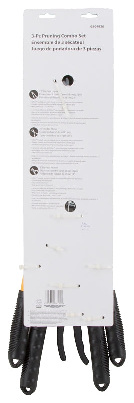 Durable pruner set for trimming plants, shrubs and small trees. Cushioned grip handles for maneuverability and ease of use.