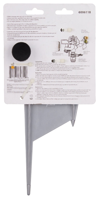 Adjustable head, from partial to full circle. Constructed of heavy-duty non-corrosive zinc and brass. Provides full uniform coverage up to 60 ft Dia. For effective long distance sprinkling.