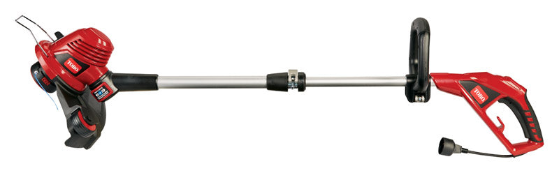 Toro's 5 Amp string trimmer and edger are powerful with high-performing features that make yard care seem effortless. The telescoping aluminum shaft is tough and durable to withstand any stresses while trimming. 14 in. dual line cutting width gets the job done quickly and user-friendly features make the job much easier. With a simple 1-step push button, the operator can convert to edging in seconds and the wheel guides the edger for precision trimming. The telescoping shaft and adjustable assist handle provide extended reach for those hard-to-get patches.