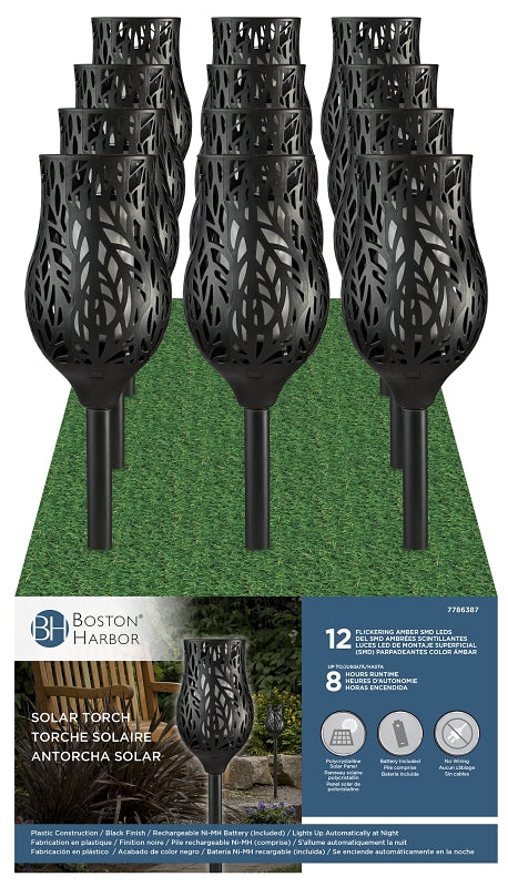 Boston Harbor 27096 Solar Flickering Flame Torch Light, Ni-MH Battery, AA Battery, 12-Lamp, LED Lamp, Plastic Fixture, Pack of 12