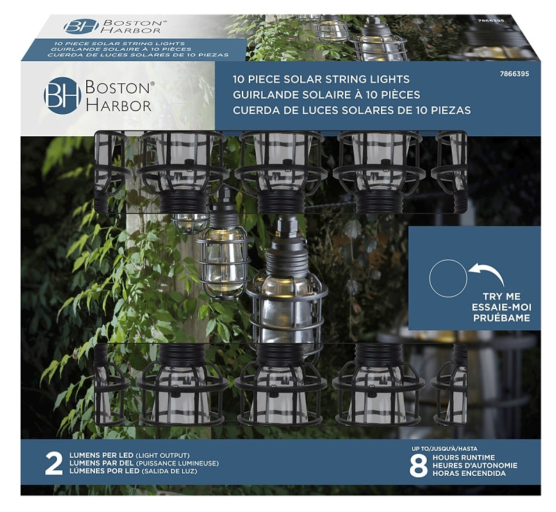 Boston Harbor 27099 Solar String Lantern Light, Ni-MH Battery, AA Battery, 10-Lamp, LED Lamp, Plastic Fixture, Black