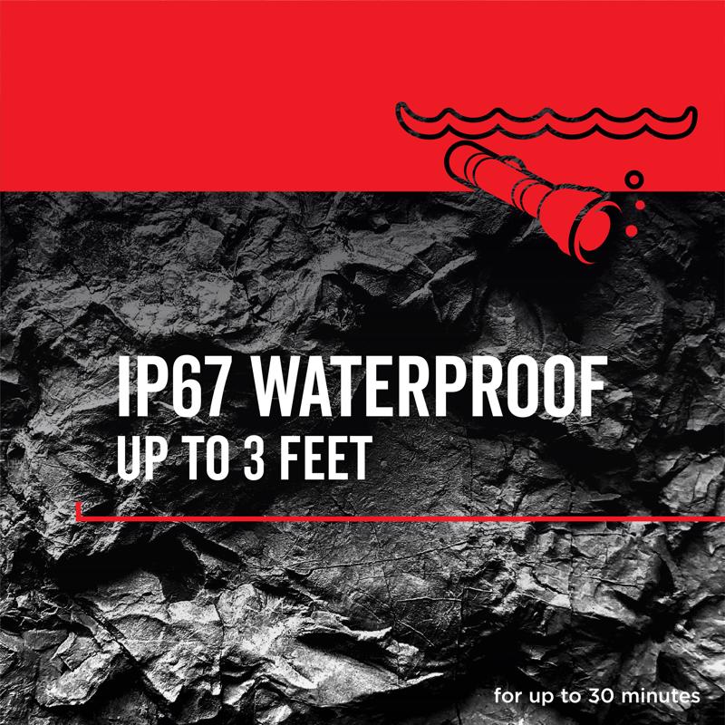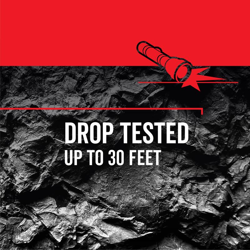 See the cutting edge durability for yourself! The 300 lumen virtually indestructible LED flashlight gets the job done, delivering up to a powerful 300 lumens and 551 feet of beam distance on high mode. The tactical flashlight is a versatile companion for an job. Stay in the field longer with an energy saving model that delivers up to 39 hours of performance. The ergonomic flash light design offers simple one handed use to keep your other hand free. The flashlight is drop tested up to 30 feet to ensure it's with you over the long haul. Plus it's IP67 waterproof, so it can be submerged in up to 3 feet of water for up to 30 minutes. It's dust proof too, protecting components even when surrounded by a cloud of dust for up to 3 hours.