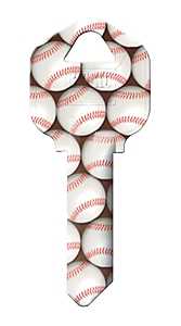Hy-Ko Key Blank, Design/Theme: Baseball, Key Number: KW1, Brass, Nickel-Plated, Dimensions: 0.87 in W x 0.08 in D x 2.05 in H, Suitable for: Kwikset KW1 Keyways