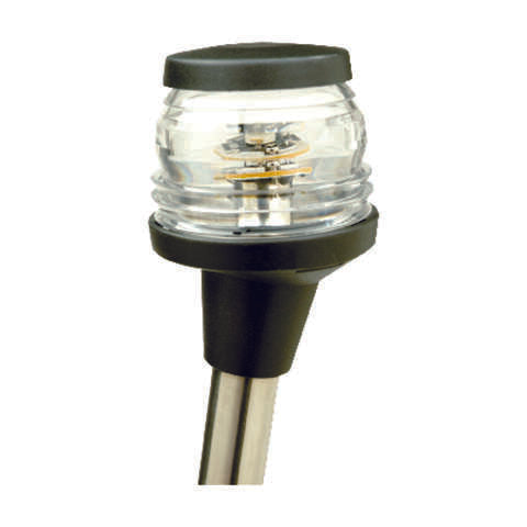 LED All-Round Light on stainless steel pole with a black locking base that lets you remove the light from your boat when not in use. Base has pre-drilled countersunk holes for easy installation.