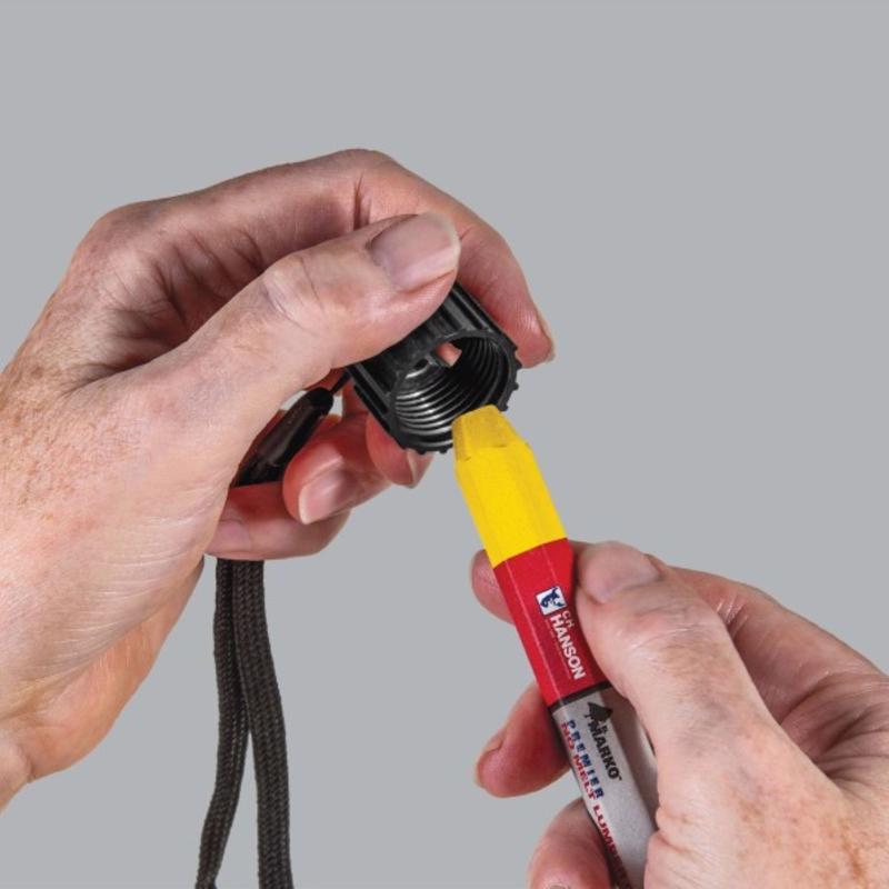 Extend the life of your lumber crayon by investing in a C.H. Hanson wood lumber crayon holder. This wooden crayon holder features a removable hard plastic tail cap and a lanyard. It holds CH Hanson lumber crayons and can also accommodate both round and hexagon chalk.