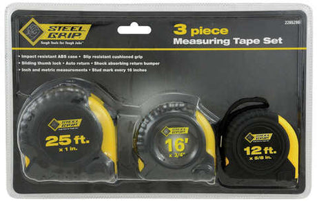 $23.94$23.99Unit price /UnavailableIn stock (486 units)Steel Grip 25 ft. L X 1 in. W Tape Measure Set 3 pk