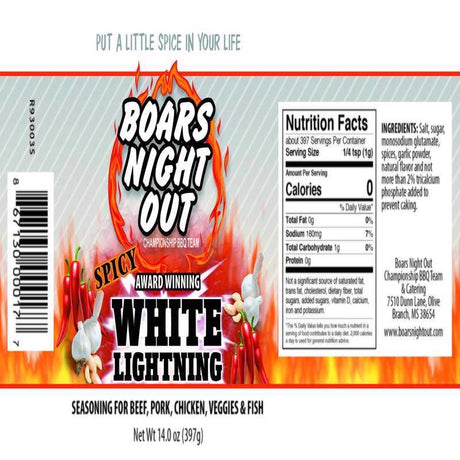$12.94$12.99Unit price /UnavailableBoars Night Out White Lightning BBQ Rub 14 oz